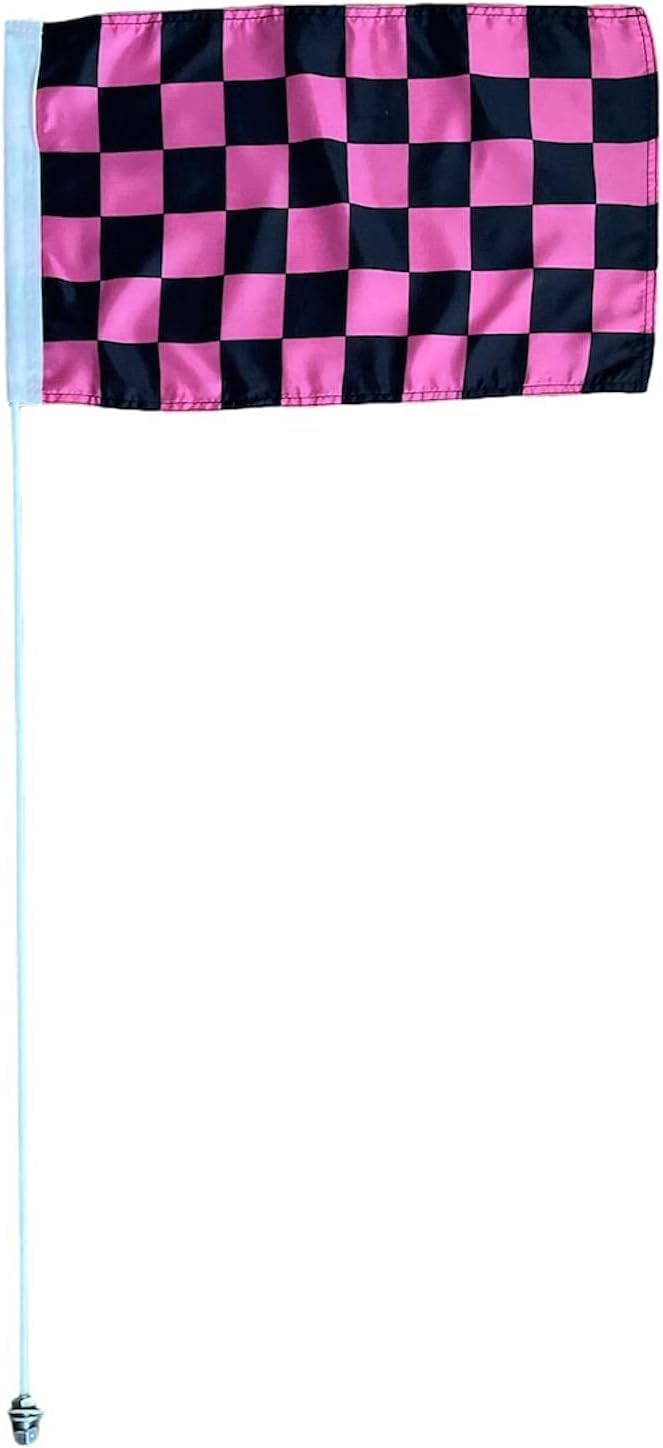 Bandera tipo látigo para vehículos todo terreno JLP Maverick X3 Polaris Tundra Dunes de 7 pies de alto y 5/16 pulgadas de alto, resistente, de cuadros, color rosa y blanco