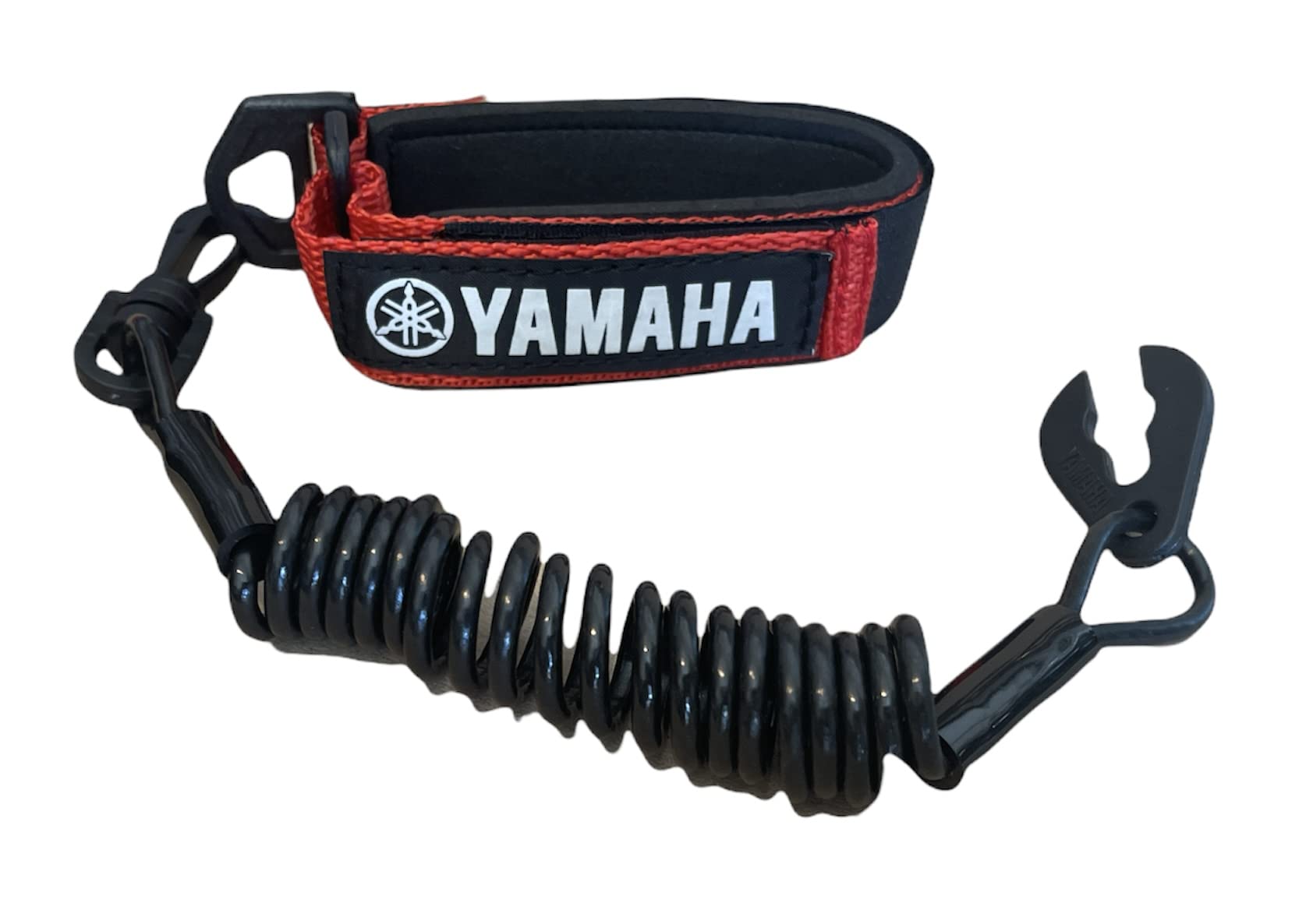 Muñequera flotante de lujo Yamaha fabricada con correas de calidad marina, neopreno y velcro. Se fija fácilmente a cualquier cordón con clip y brinda al conductor una sensación de seguridad. Viene con el logotipo de fábrica de Yamaha.