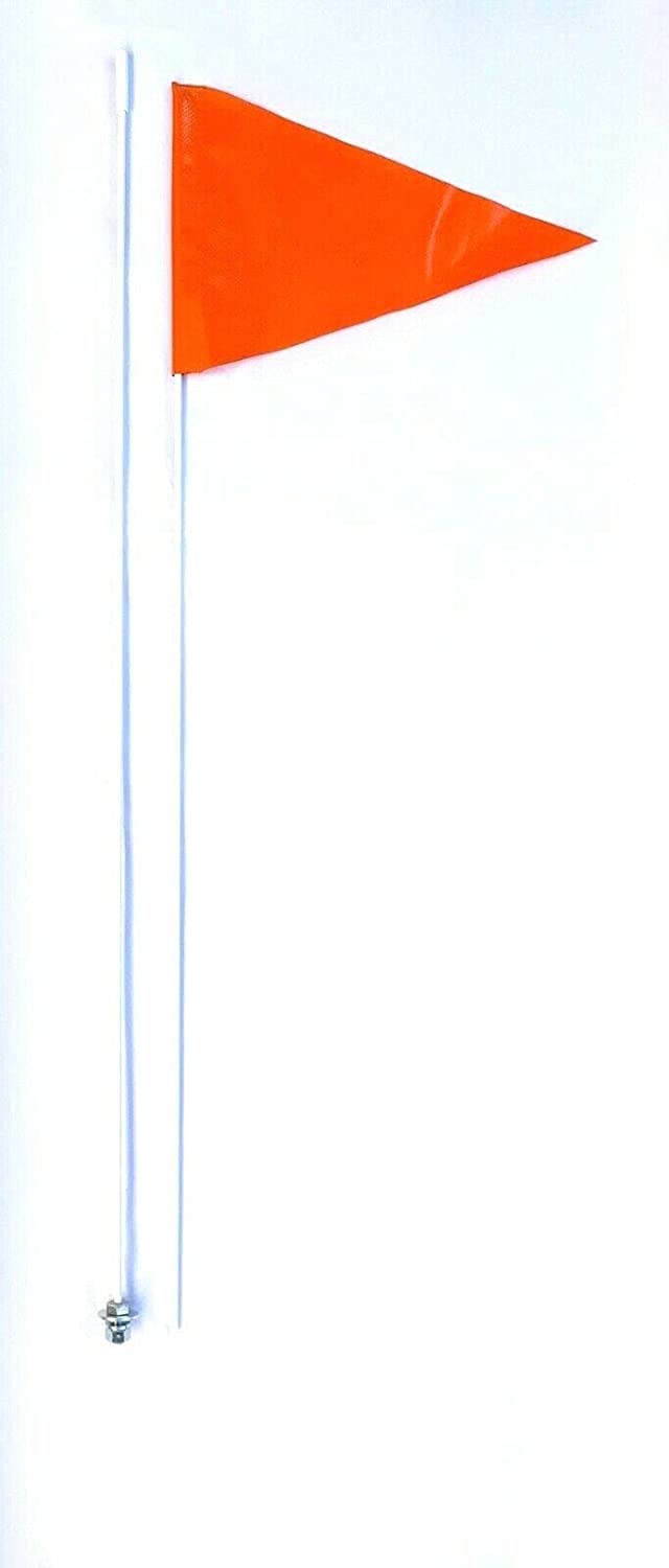 2 PART ATV FLAG - 7 FT This flag is 2 sections of 42" fiberglass joined by a nylon connector. This 7' ATV Flag comes with a heavy duty tear resistant fade resistant vinyl Orange pennant on a 1/4" fiberglass rod with a mounting bolt assembly