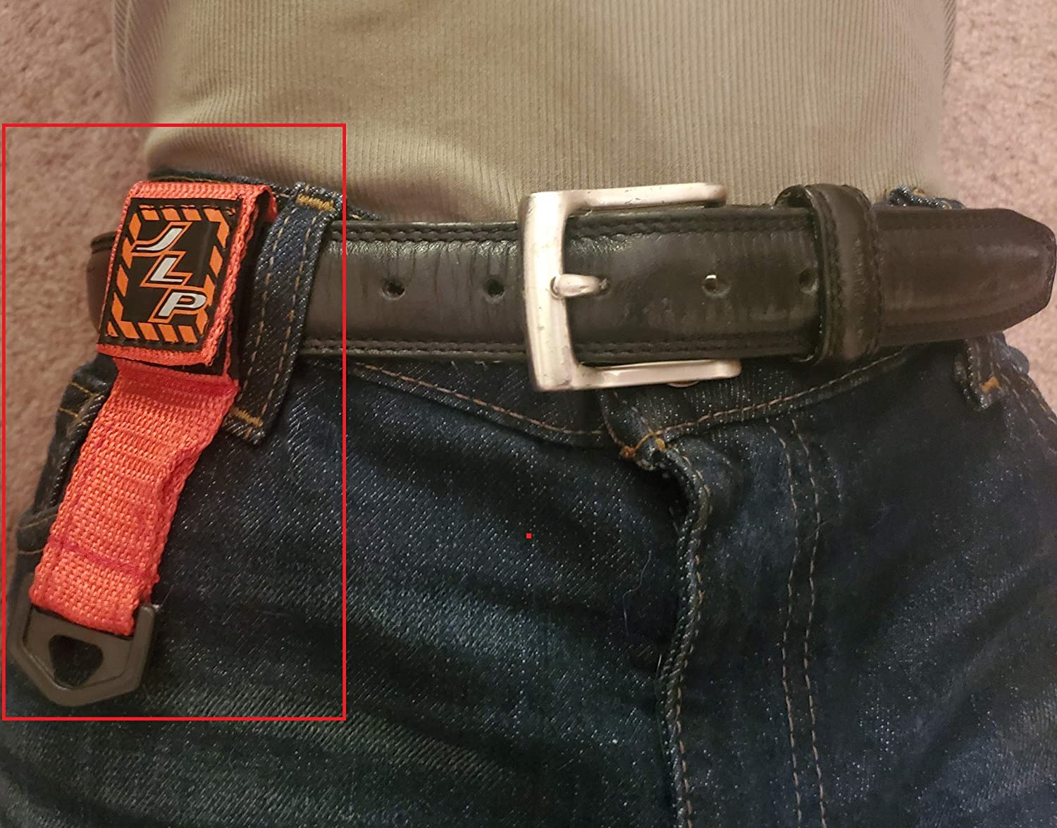 Carry it in your pocket, bag or attach it to your belt. This is made to fit on your belt and to hold your keys or anything else you want to clip onto it you need quick access to. 4 1/2 inch long x 1 1/4" wide web belt loop key holder with D Ring. The strap has a heavy duty D ring. The strap is reinforced webbing. Inserting your belt through the leather strap prevents ripping the belt loops on your pants.