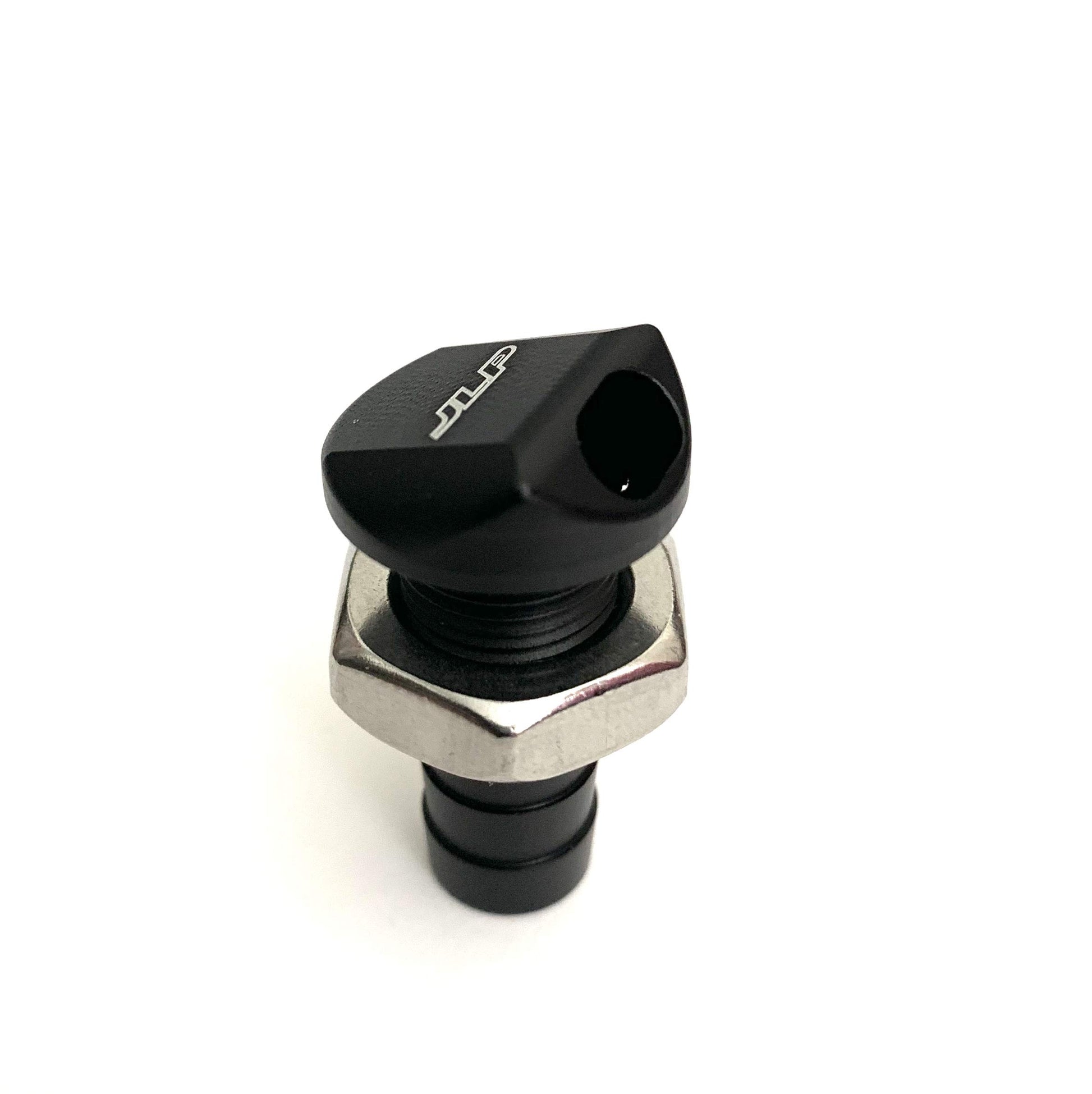 JLP billet water bypass fittings increase engine performance by diverting some of the water from the cylinder head to the bypass fitting, rather than forcing all of the water through the exhaust system. This machined bypass fittings is angled at 90 degrees of flow. Fits 3/8" ID Cooling Hoses. Hose Diameter: 3/8" Inch Nut Width: 11/16" Inch NOTE: Install with 1/2" Inch Drill Bit. COLOR: Black
