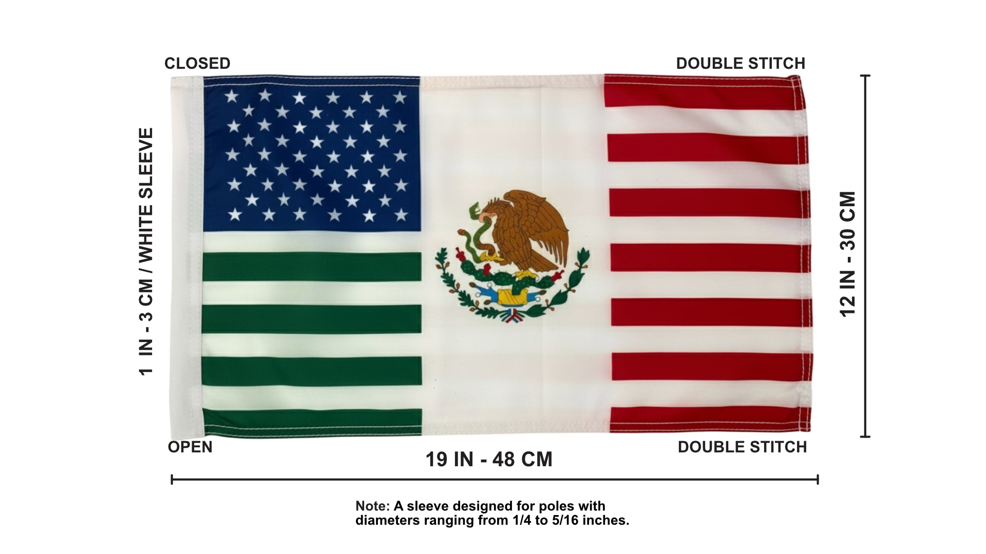 JLP 3.5 Ft Tall 1/4 In Pole USA Mexico Friendship Go Kart Polaris RZR ATV Whip Flag Glamis