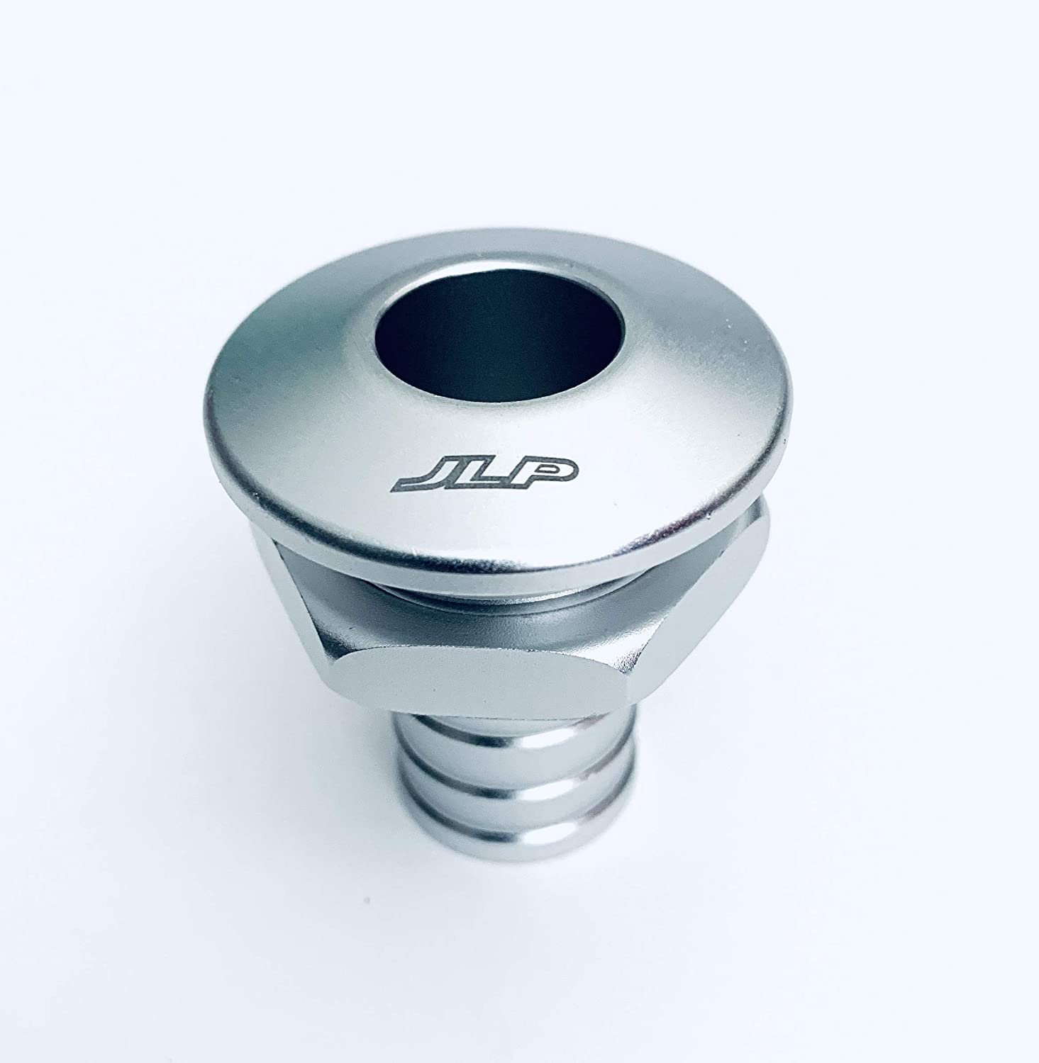- JLP machined aluminum bilge fittings are a clean replacement of the bulky plastic fittings usually supplied with aftermarket bilge pump kits. These fittings have a 3/4" inch hose barb flange machined on them so no hose clamp is necessary. Offered in anodized colors. Hose Barb Diameter (OD): 3/4" Inch Thread Length: 1/2" Inch Nut Width: 1-1/4" Inch NOTE: Install with 1" Inch Hole Saw Bit.